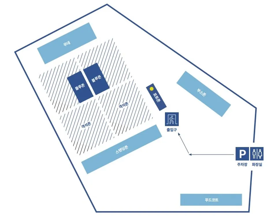 객석존의 좌석은 선착순 입장으로 정해지며, 비지정석입니다. (좌석 번호 없음)