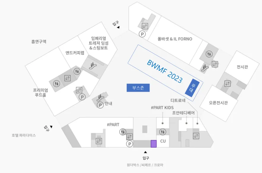 플라자 1층에 페스티벌 공연장 및 부스존이 있습니다.